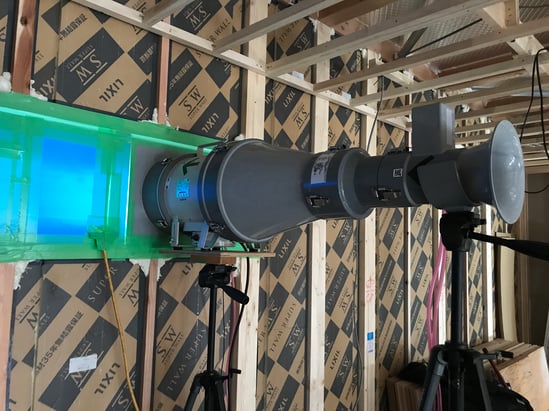 しかも家の中の温度差をなくすことで家の中どこにいても快適に過ごすことが可能です。家を魔法瓶みたいにしてしまいます。それを可能しているのが高気密性です。数値的に高い断熱を施しても隙間が多ければ意味がありませんよね。SUPER WALL工法では、一軒一軒測定器を持ち込み気密測定を行います。私が担当した建物では、C値0.22でした。これは、床面積1㎡内に0.22㎡しか隙間がないということです。すごいでしょう!自慢です。